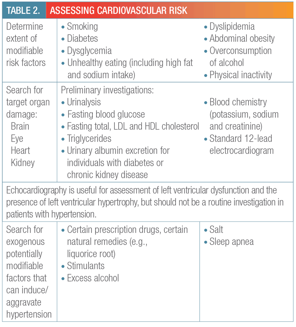 Global cardiovascular risk should be assessed (Table 2). Tools such as the Framingham Heart Study model (http://www.framinghamheartstudy.org/risk/ hrdcoronary.html) or Systematic Cerebrovascular and Coronary Risk Evaluation Canada (www.scorecanada.ca) may be employed.